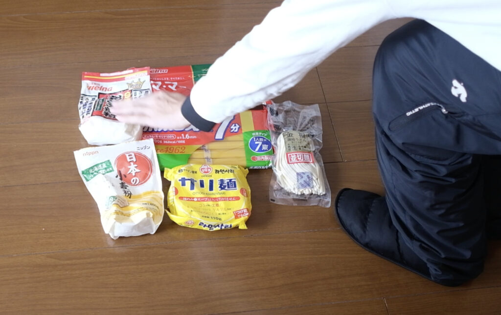 家にある食品をすべて出し、 小麦、植物油、乳製品、砂糖の順に確認しました。