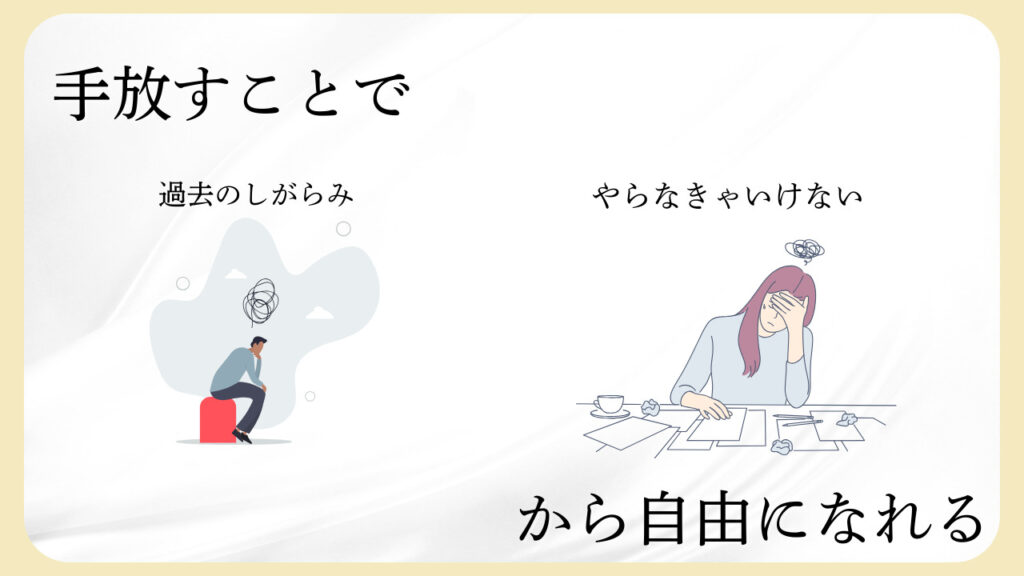 しかし、手放すことで 過去のしがらみや「やらなきゃ」という圧力から自由になり、