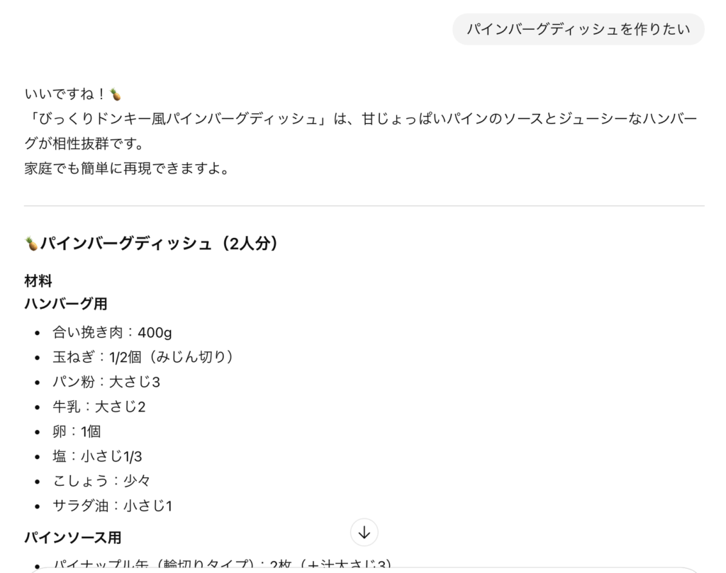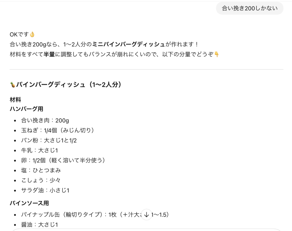 そして、特に便利だと感じているのが、ChatGPTと料理をすることです。